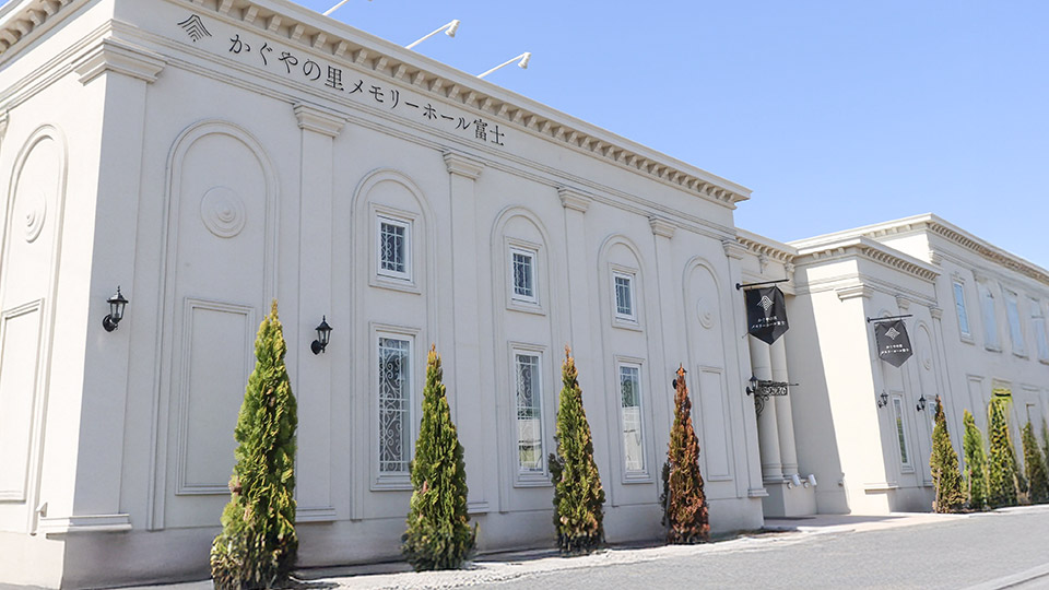 かぐやの里メモリーホール 富士は小規模な家族葬から最大80名までの会葬者を招いた葬儀まで幅広く対応しております。白を基調とした落ち着きのある館内では、ご家族の想いを大切にしながら、故人様との最後のひとときを心に刻む空間づくりが可能です。また、富士市内はもちろん、東名高速道路「富士IC」や新幹線「新富士駅」からも幹線道路を利用してスムーズにアクセスできる立地のため、遠方からお越しのご親族にも便利な会館となっております。